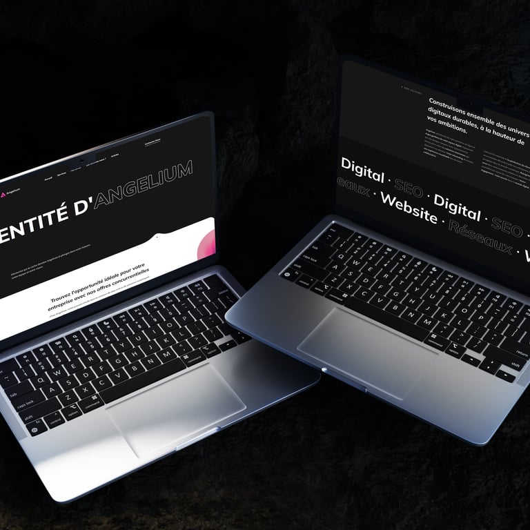 La première version de notre site Angelium était une exploration audacieuse du design avant-gardiste, pensée pour repousser les limites de la créativité.
