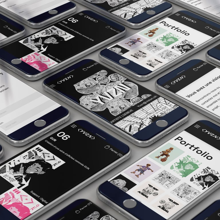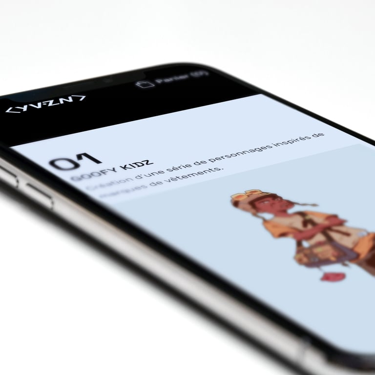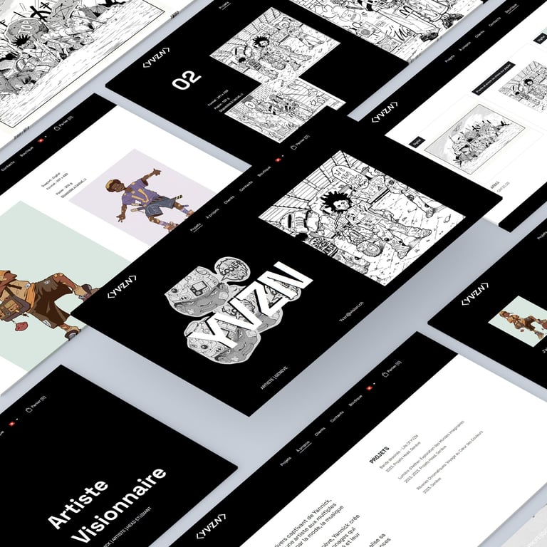 Pour ce projet, notre mission était de concevoir un site web immersif et épuré, à l’image de l’univers artistique de Yvnz.